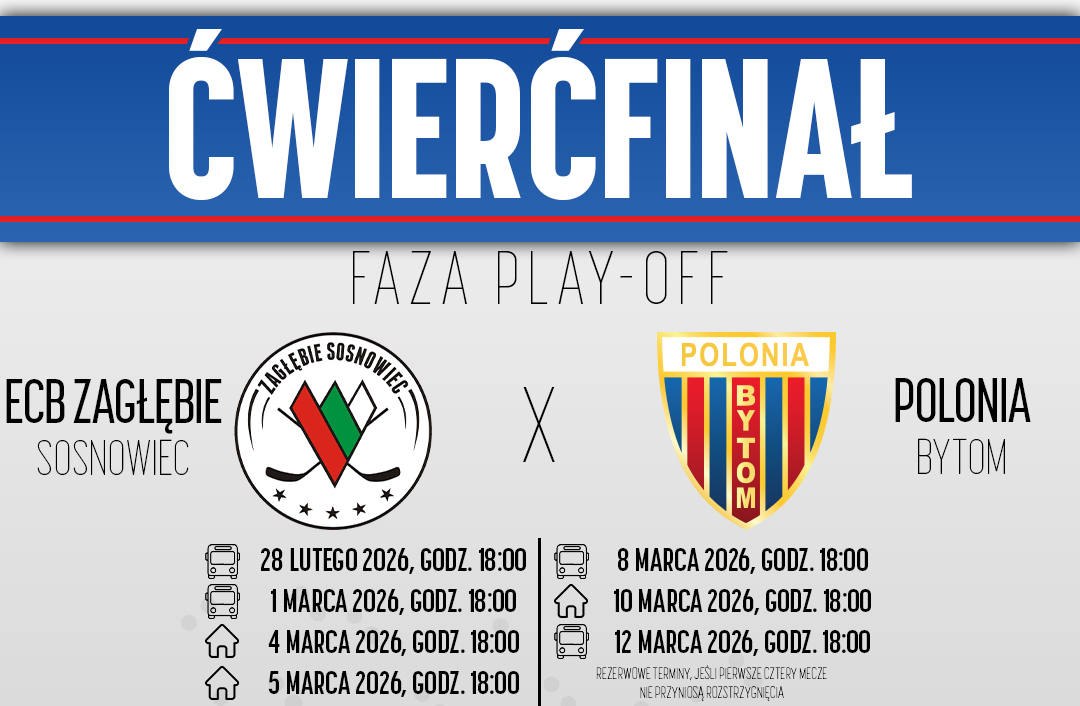 Uprzejmie informujemy, że akredytacje stałe na sezon 2025/2026 nie będą obowiązywać na mecze fazy play-off Tauron Hokej Ligi. Zachęcamy do składania wniosków w serwisie Accredito, gdzie znajdą Państwo już proces akredytacyjny na dwa ćwierćfinałowe spotkania z ECB Zagłębiem Sosnowiec. Mecze odbędą się w środę (4 marca) oraz czwartek (5 marca) o godzinie 18.00 na lodowisku…